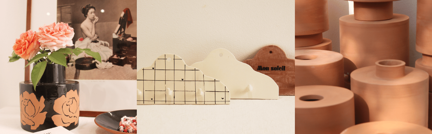 Entre terres blanches, rouges et noires, chaque collection explore la matière brute et ses textures, révélant un dialogue subtil entre formes, contrastes et lumière.