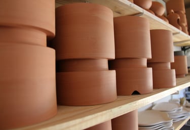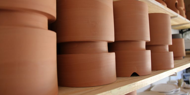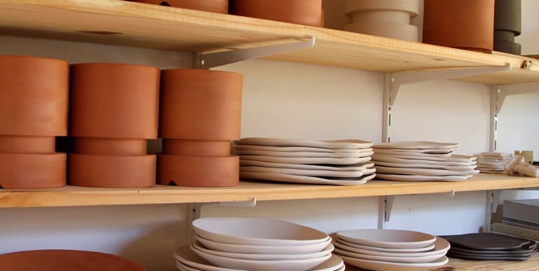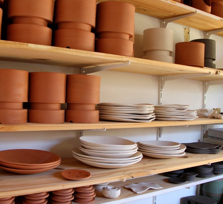 Je crée chaque pièce à la main dans mon atelier à Saint-Paul-lès-Dax, dans les Landes. J'’utilise principalement la technique de la plaque, assemblant les éléments avant de les laisser sécher, puis les cuire.