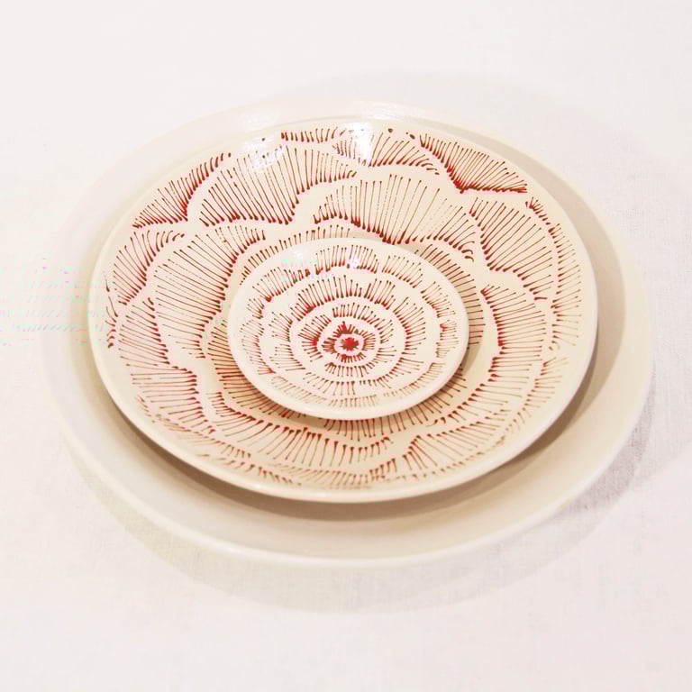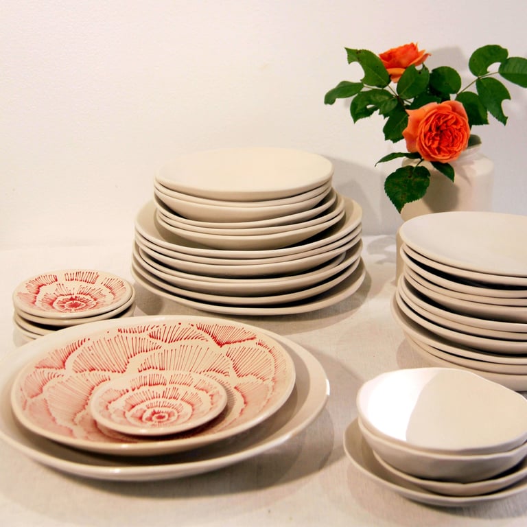 Une série de bols aux dimensions variées, ornés de motifs floraux délicats, où la matière et le décor dialoguent en harmonie.