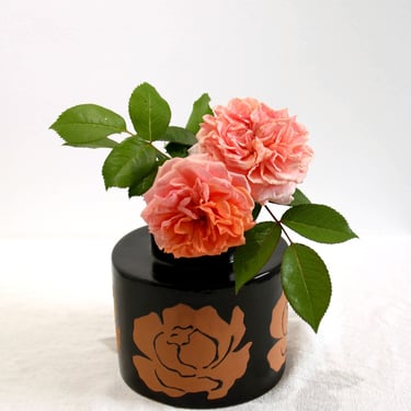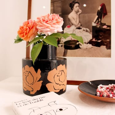 Avec sa silhouette cylindrique épurée, ce vase met en valeur un motif de pivoines qui évoque la simplicité et l’élégance .