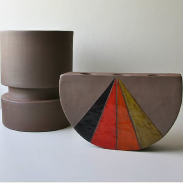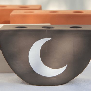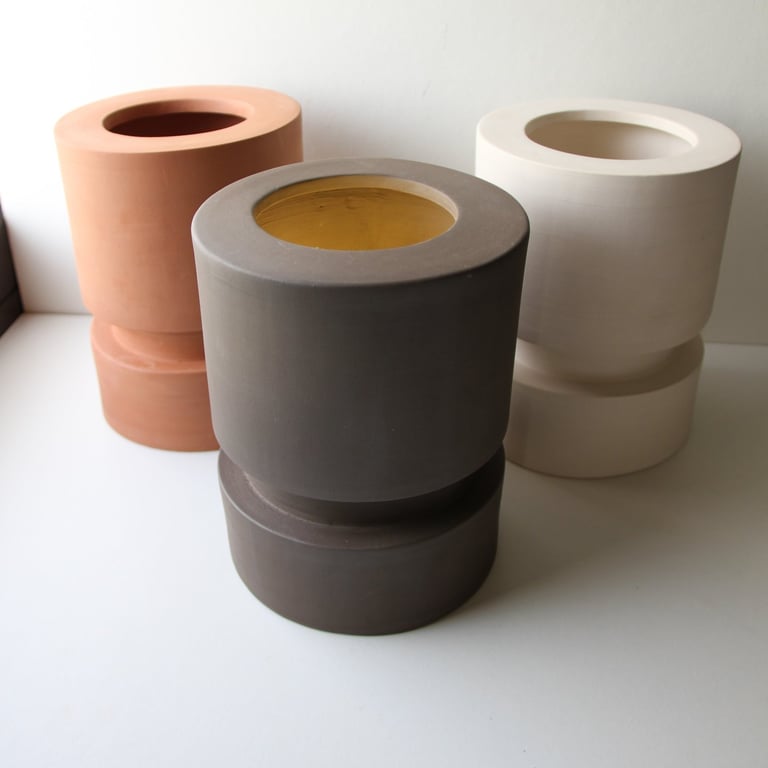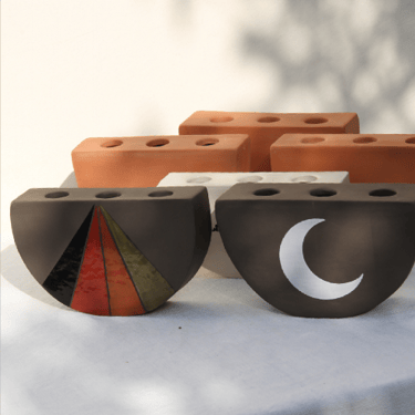 Fabriqué à la plaque et minutieusement assemblé, il se transforme selon les envies grâce à ses capuchons ajustables. Pensé pour les arts de la table et les objets décoratifs, il traverse les usages avec élégance, entre utilité et sculpture. Inspiré par le rythme solaire, ces vases bougeoirs oscillent entre ombre et lumière, et captent la douceur changeante du crépuscule.