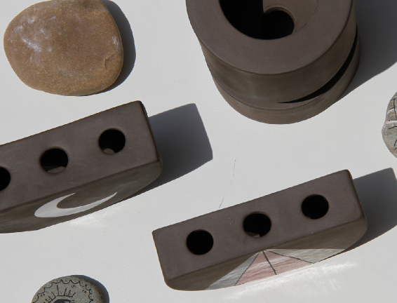 Matière solaire et puissante, la terre rouge capte la force des paysages minéraux et la chaleur du feu qui la façonne. Riche et profonde, la terre rouge évoque les terres argileuses du Sud Ouest et du Pays Basque, ainsi que la chaleur du feu qui l’anime. Dense et vivante, elle met en valeur chaque empreinte et chaque modelage, donnant à l’objet une âme vibrante et chaleureuse.